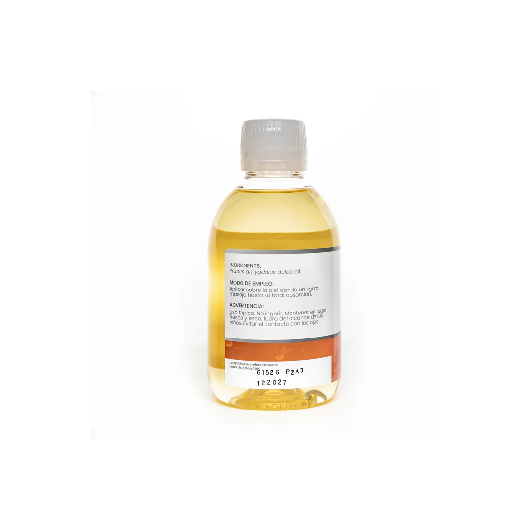 Aceite de almendras dulces 100% de primera presión en frío de uso cosmético. Con vitamina E para su conservación.