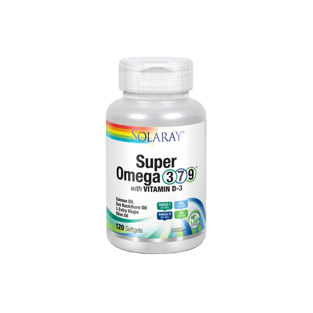 Super omega 3,7 y 9 con vitamina D-3 120 perlas Solaray