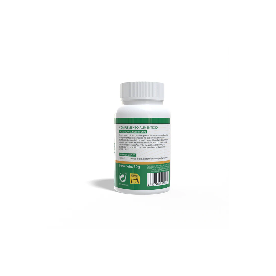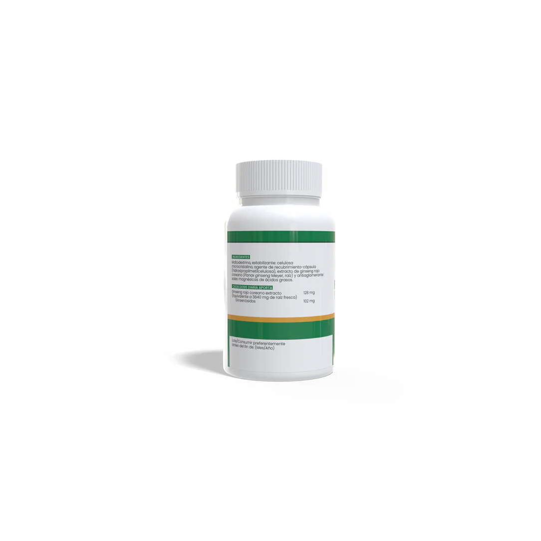 Complemento alimenticio formulado con extracto de ginseng rojo coreano (Panax ginseng Meyer), reconocido por su capacidad para aumentar la vitalidad, la resistencia física y mental, y mejorar la sensación general de bienestar. Gracias a sus gingenósidos, fortalece el organismo y ayuda a mantener altos niveles de energía a lo largo del día.