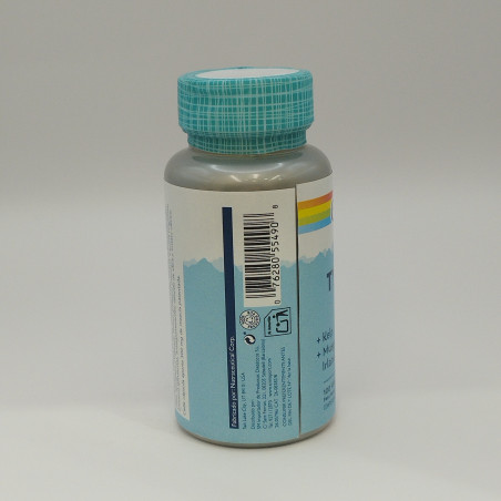 Thyroid Blend SP-26™ de Solaray es un complemento alimenticio que combina una mezcla patentada de plantas y algas pensada como apoyo nutricional dentro de un enfoque de bienestar general. Incorpora algas marinas tipo kelp (Laminaria spp.) y musgo irlandés (Chondrus crispus), naturalmente ricos en minerales como el yodo, junto con eleuthero, genciana, alholva y cayena, usadas tradicionalmente en preparaciones herbales.