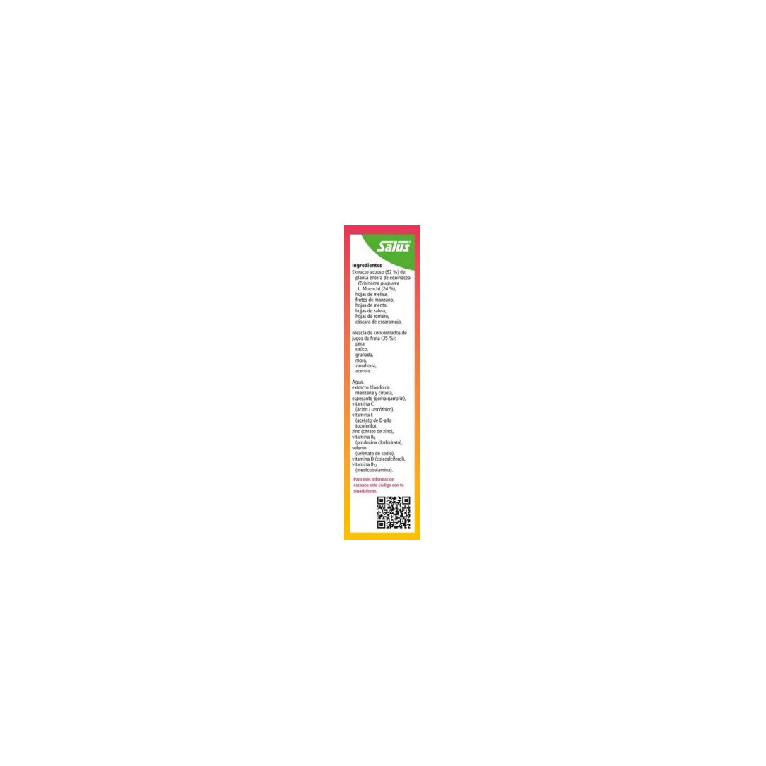 Contiene un extracto acuoso (52 %) a base de equinácea (24 %), melisa, manzano, menta, salvia, romero y escaramujo. También incluye una mezcla de concentrados de jugos de frutas (35 %) como pera, saúco, granada, mora, zanahoria y acerola. Se completa con agua, extracto blando de manzana y ciruela, goma garrofín como espesante, y micronutrientes clave: vitamina C (ácido L-ascórbico), vitamina E (acetato de D-alfa tocoferilo), zinc (citrato de zinc), vitamina B6 (piridoxina clorhidrato), selenio (selenato de sodio), vitamina D (colecalciferol) y vitamina B12 (metilcobalamina).