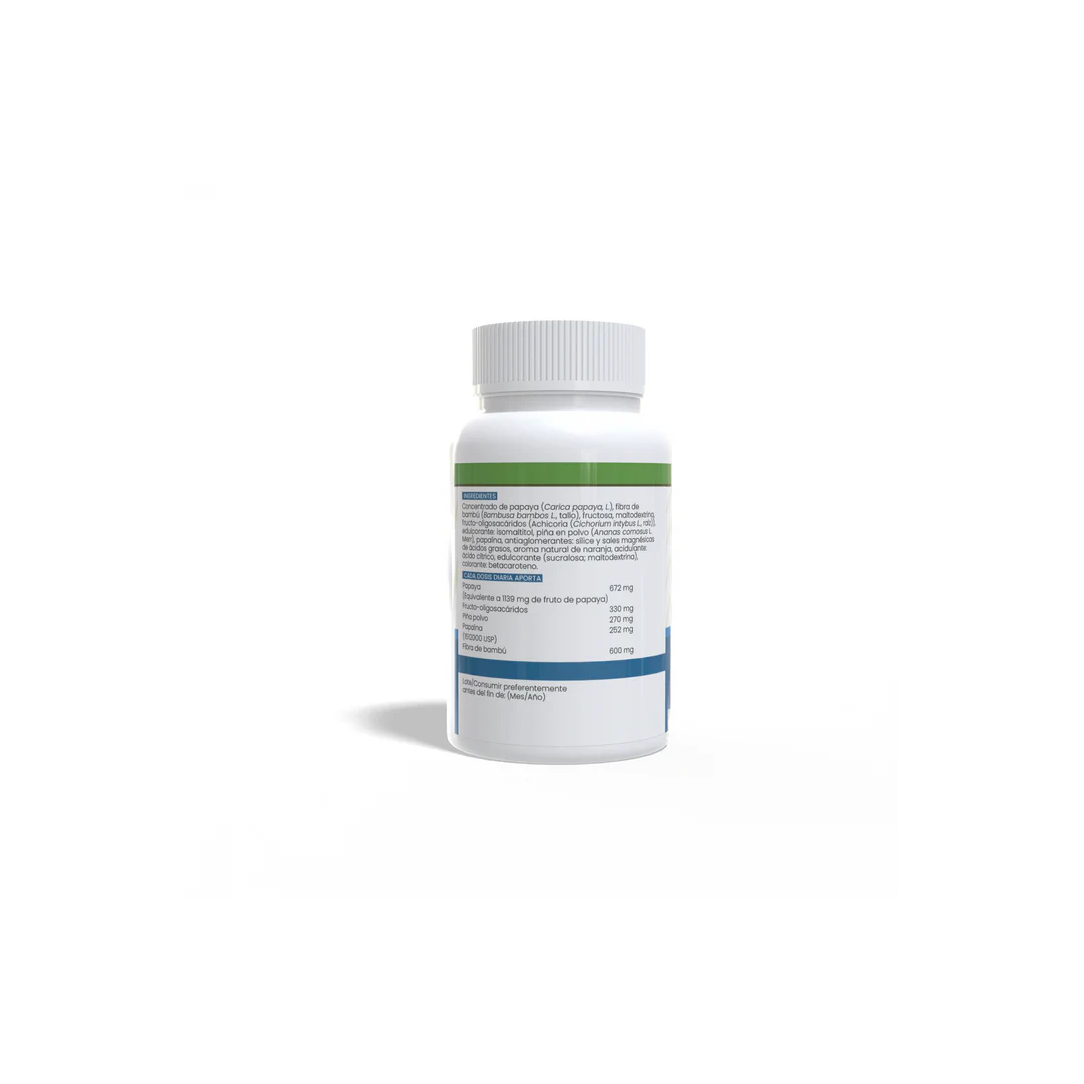 Papaya 600mg de Sotya es un complemento alimenticio en comprimidos masticables, formulado con fruta tropical rica en enzimas digestivas que ayudan a descomponer las proteínas y facilitar su asimilación. Su consumo regular contribuye a una digestión más suave y eficiente, favoreciendo el bienestar gastrointestinal de forma natural.