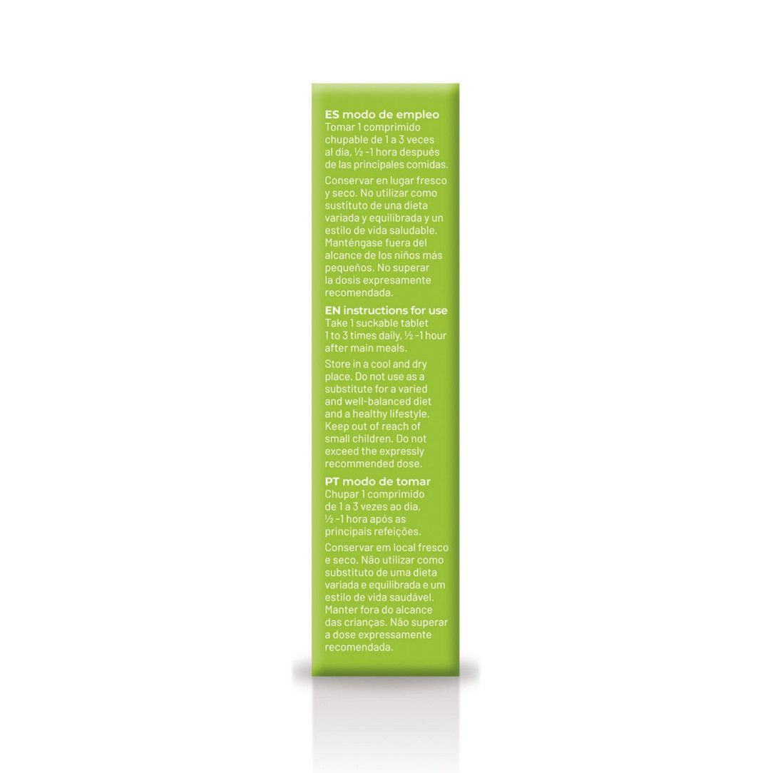 Tomar 1 comprimido chupable de 1 a 3 veces al día, media hora a una hora después de las principales comidas.