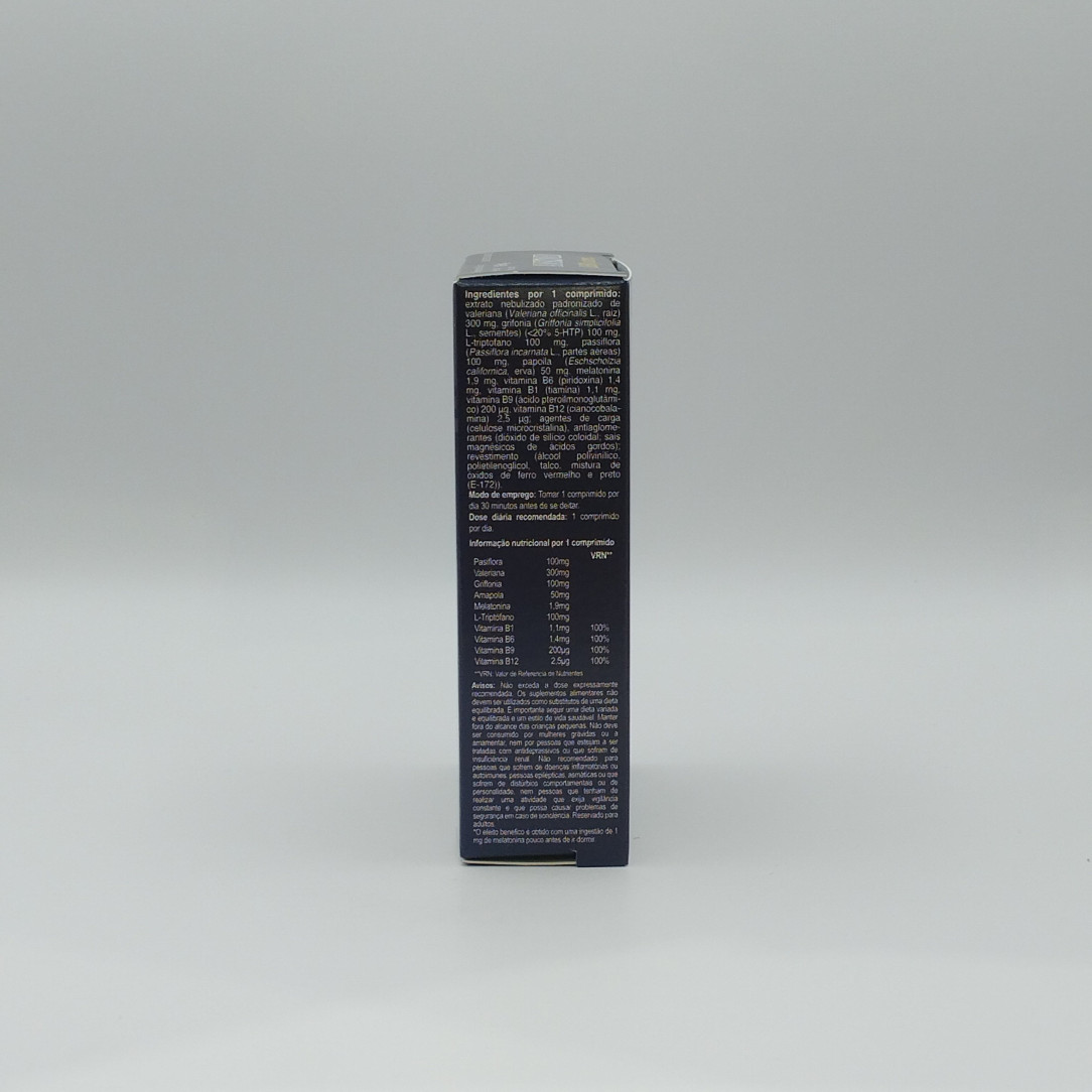 Extracto nebulizado estandarizado de valeriana (Valeriana officinalis L., raíz) 300 mg; griffonia (Griffonia simplicifolia L., semillas) (<20% 5-HTP) 100 mg; L-triptófano 100 mg; pasiflora (Passiflora incarnata L., partes aéreas) 100 mg; amapola (Eschscholzia californica, hierba) 50 mg; melatonina 1,9 mg; vitamina B6 (piridoxina) 1,4 mg; vitamina B1 (tiamina) 1,1 mg; vitamina B9 (ácido pteroilmonoglutámico) 200 µg; vitamina B12 (cianocobalamina) 2,5 µg; agentes de carga (celulosa microcristalina); antiaglomerantes (dióxido de silicio coloidal; sales magnésicas de ácidos grasos); recubrimiento (alcohol polivinílico, polietilenglicol, talco, mezcla de óxidos de hierro rojo y negro (E-172)).