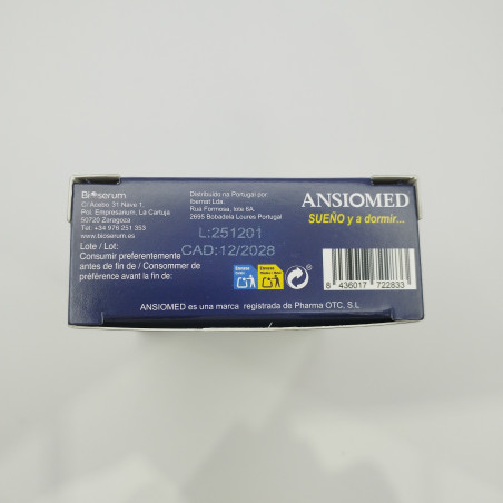Ansiomed Sueño de Bioserum es un complemento alimenticio formulado para adultos que tienen dificultad para conciliar el sueño o perciben un descanso poco reparador. Aporta melatonina, que contribuye a disminuir el tiempo necesario para conciliar el sueño, y combina vitaminas del grupo B (B1, B6, B9 y B12) con extractos vegetales y L-triptófano. Está pensado para tomar antes de acostarse como parte de una rutina de descanso.