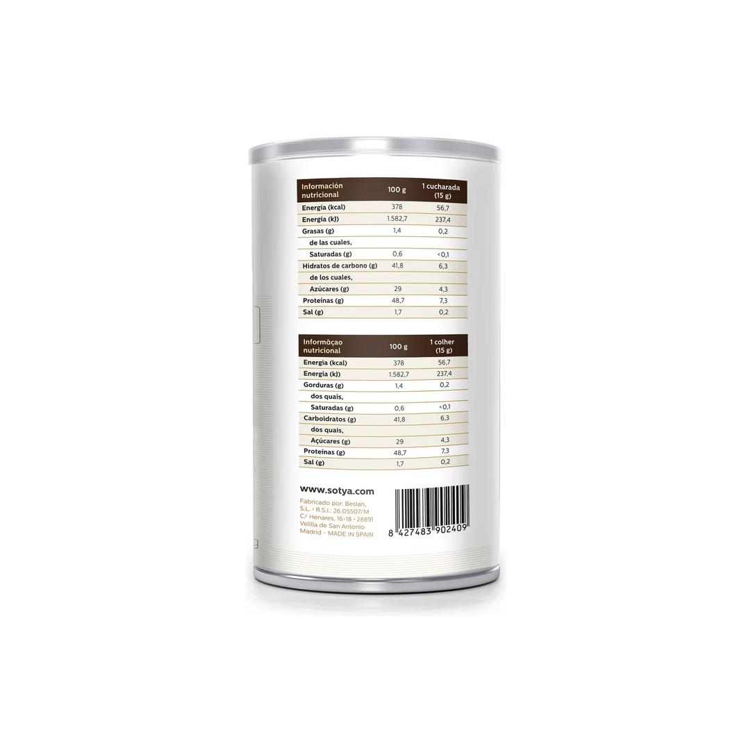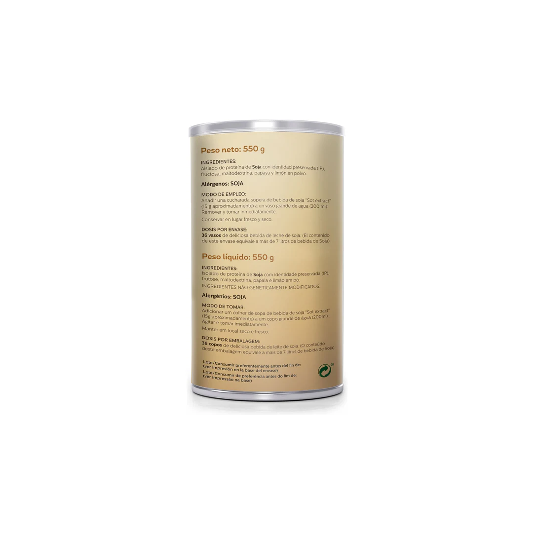 Bebida de soja en polvo elaborada a partir de aislado de proteína de soja IP (Identidad Preservada), no modificada genéticamente y con trazabilidad desde su origen. Se presenta como una alternativa vegetal a la leche, con buena solubilidad y fácil preparación.