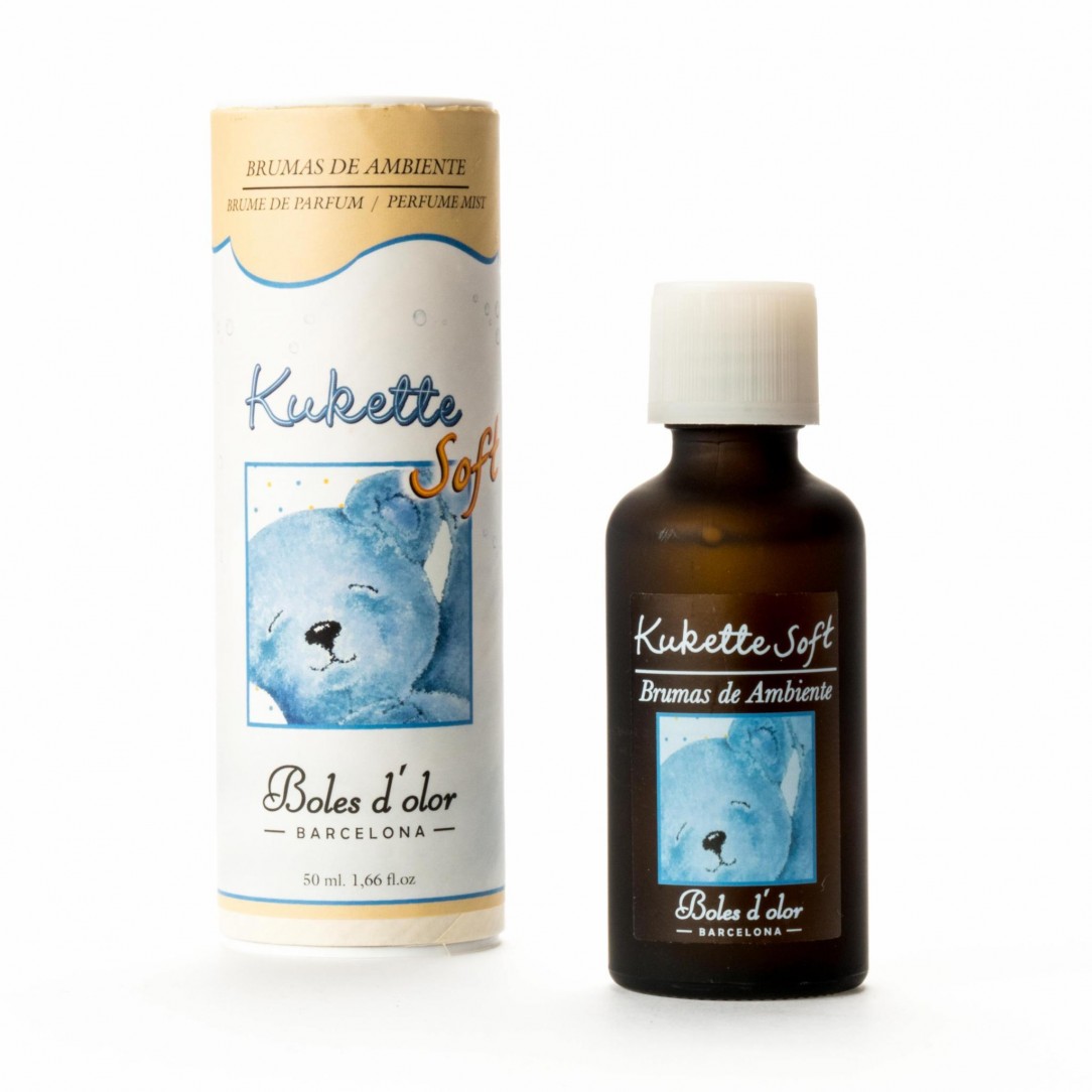 BRUMA AMBIENTS 50 ML KUKETTE SOFT BOLES D?OLOR F R E S C O R: Fresco, tierno y limpio, delicadamente cítrico y floral, tenazmente almizclado. Huele a cariño y a bebé. Las Esencias de Boles d?olor en su estado más puro. Formuladas especialmente para ser utilizados con el nuevo Brumizador de Boles d?olor y convertirse en micro gotas de puro placer olfativo que ambientarán instantáneamente tu hogar. La tecnología de micronización en frío permite que el perfume se perciba con todo su esplendor y sutileza, sin cambios ni alteraciones.Pueden utilizarse también como Concentrado de Perfumes para revitalizar potpourris, para perfumar cerámicas, y en una gran variedad de aplicaciones.