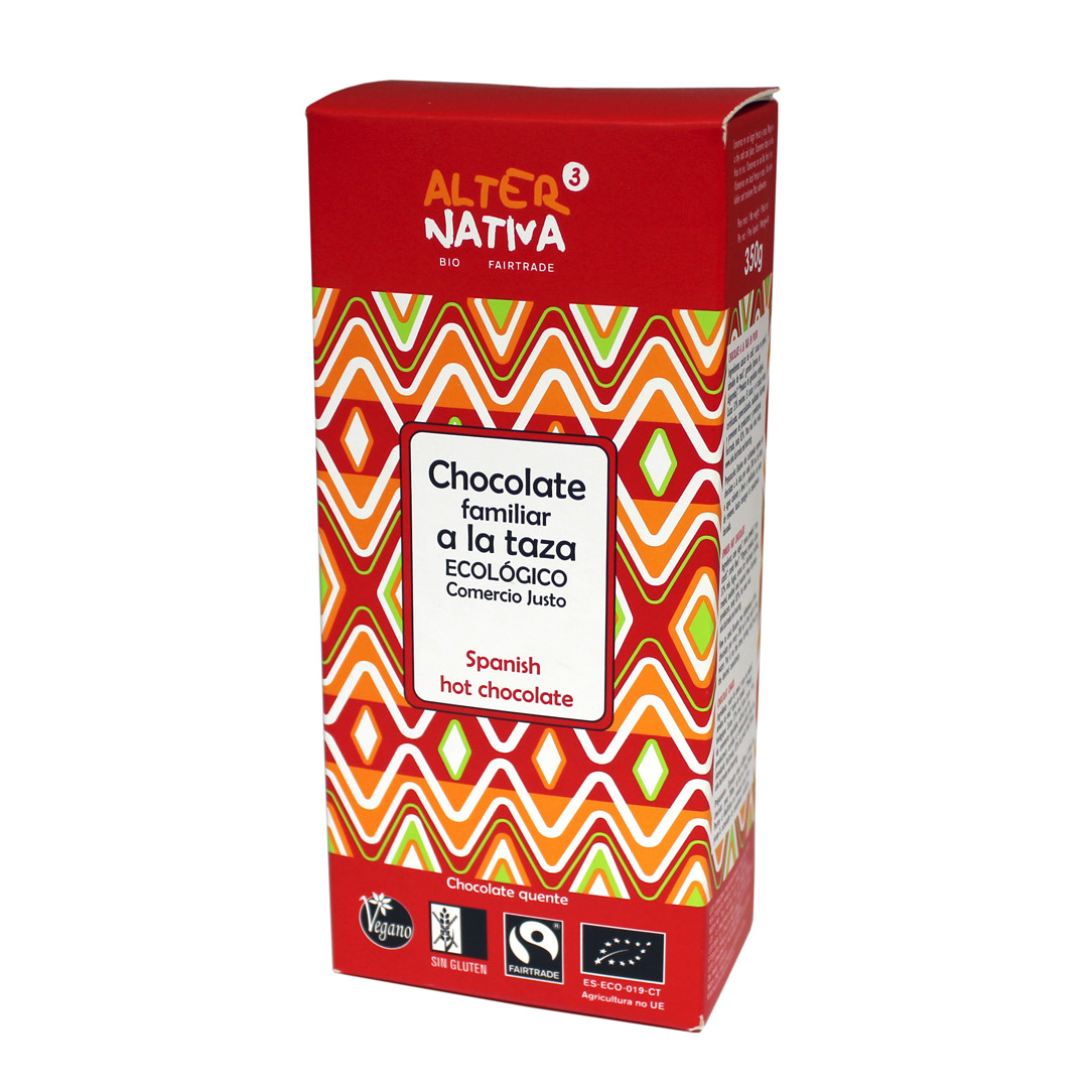 Para preparar rápida y fácilmente un delicioso cacao a la taza. Con cacao y azúcar de Comercio Justo i agricultura ecológica, con espesantes naturales y ecológicos (garrofín y almidón de maíz).Cacao de variedad Criollo. El Criollo es la variedad de cacao más apreciada por su calidad, aroma y sabor. Se trata de un cacao muy aromático y menos amargo que el Forastero, que es la variedad más abundante.Se calcula que el cacao Criollo representa menos de un 3% de la producción mundial de cacao, debido a que la planta es muy delicada, y menos productiva que otras variedades.Con 1kg de chocolate a la taza podrás preparar entre 3,5 y 4 litros de chocolate a la taza.Sin lactosa ni glutenSe presenta en bolsa de 1 Kg y en paquetes de 350g.