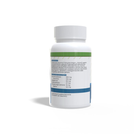 Curcumin+ de Sotya es un complemento alimenticio elaborado con cúrcuma, jengibre, canela y pimienta negra. Su fórmula natural está diseñada para apoyar el confort digestivo y articular, ayudando a controlar los procesos inflamatorios del organismo y favoreciendo la función intestinal.