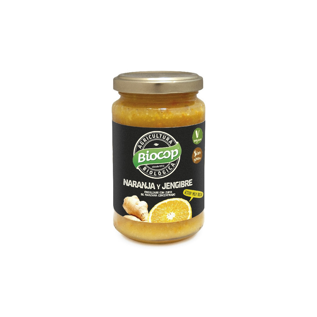 COMPOTA DE NARANJA Y JENGIBRE BIO 280 G BIOCOPCompota de naranja con jengibre. Elaborada con naranjas maduras mediante cocción mínima para garantizar todo el sabor y aroma de la fruta. Endulzado con concentrado de zumo de manzana.Para untar sobre tostadas o tortitas, también para la elaboración de postres.