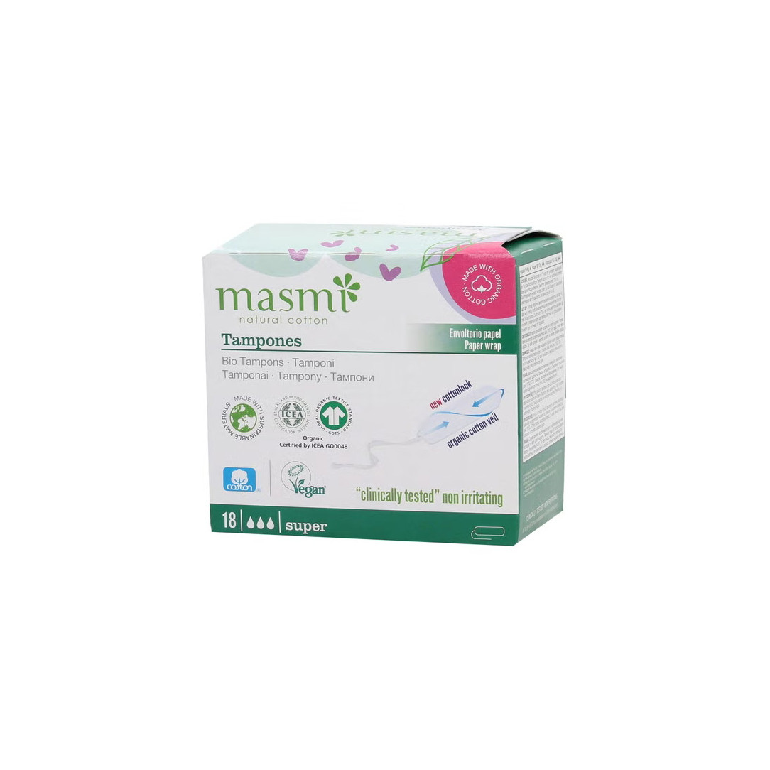 Tampones de algodon super sin aplicador bio 18ud Masmi