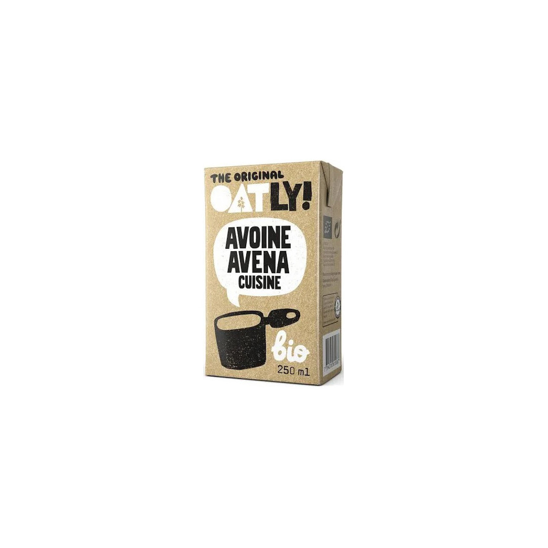 CREMA DE AVENA LIQUIDA PARA COCINAR CUISINE BIO 250 ML OATLY¡Descubre Cuisine ecológica! ¡Perfecta para la cocina!Oatly Cuisine ecológica es simplemente una forma de comer mejor. Utilízala en lugar de la nata para cocinar y dale a tus platos sustancia y buen sabor.Es un producto completamente vegetal, libre de leche y soja, que sólo contiene el 13% de grasa, además, tiene una composición sana y equilibrada.Oatly Cuisine ecológica se encuentra disponible en envases de 250 ml.