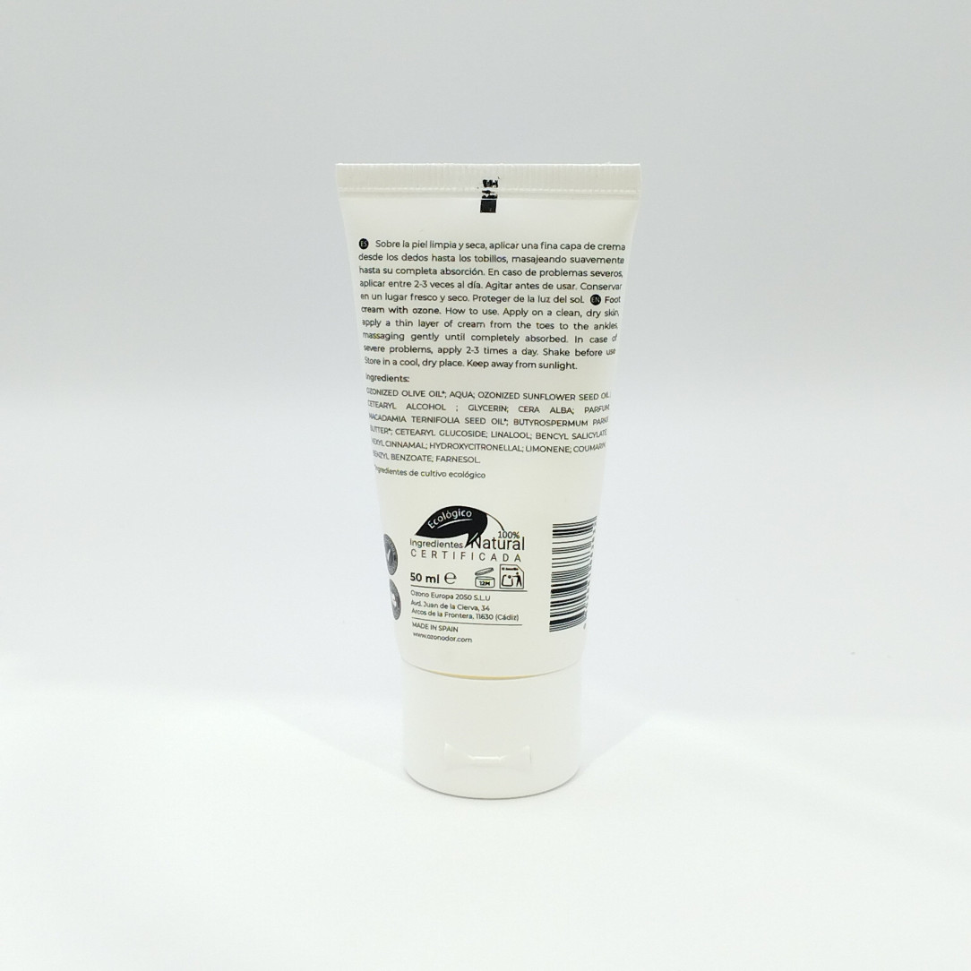 Ozono DOrCrema de pies natural con aceites ozonizados que hidrata, revitaliza y ayuda contra hongos, durezas y mal olor. Estimula la producción de colágeno para pies suaves y saludables.