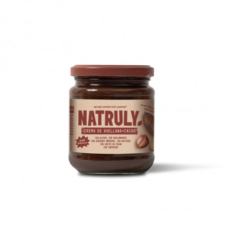 La crema de cacao y avellanas Natruly es una alternativa saludable que no contiene azúcar ni edulcorantes, manteniendo el sabor tradicional del chocolate y las avellanas. Endulzada únicamente con fibra de achicoria, ofrece una opción 100% natural para disfrutar del chocolate sin renunciar al sabor.