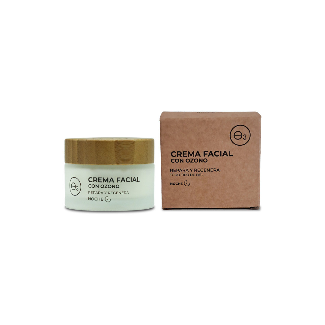 La Crema Facial de Noche es 100% natural porque no lleva ningún compuesto o sustancia química. Todos los componentes provienen de materias primas naturales (aceites, ceras, esencias, etc). Laboratorios OZONO EUROPA, es el único del mundo dedicado a la DermoCosmética de Ozono que el 100% de los productos que fabricamos son Naturales y sus materias primas de cultivos Ecológicos, con Certificación número OZEU2050/01.