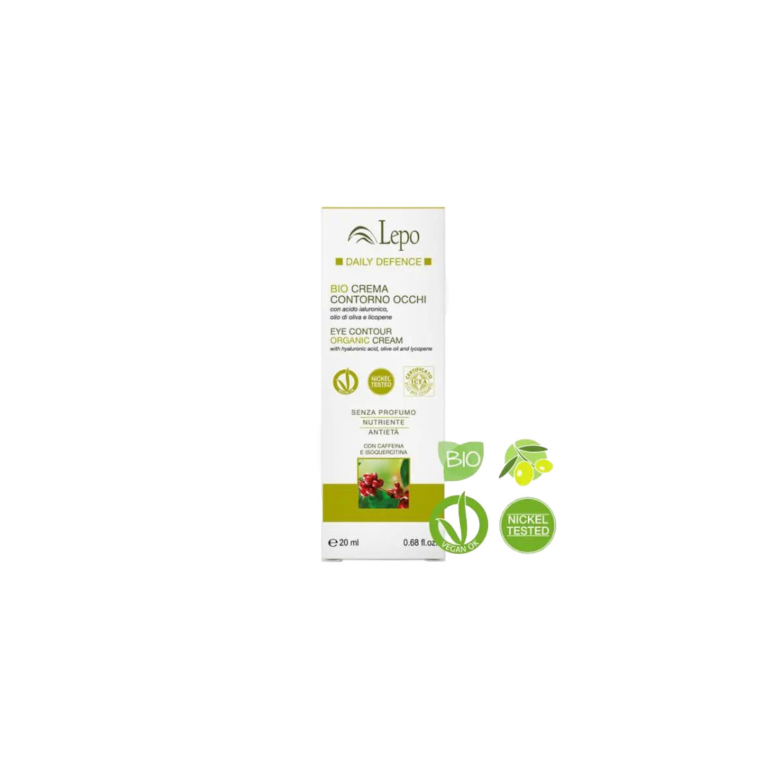 La Crema Contorno de Ojos Bio de Lepo hidrata y revitaliza el área delicada de los ojos. Con aceite de oliva, jojoba y manteca de karité, combate las arrugas y patas de gallo, ofreciendo una mirada fresca, firme y rejuvenecida.