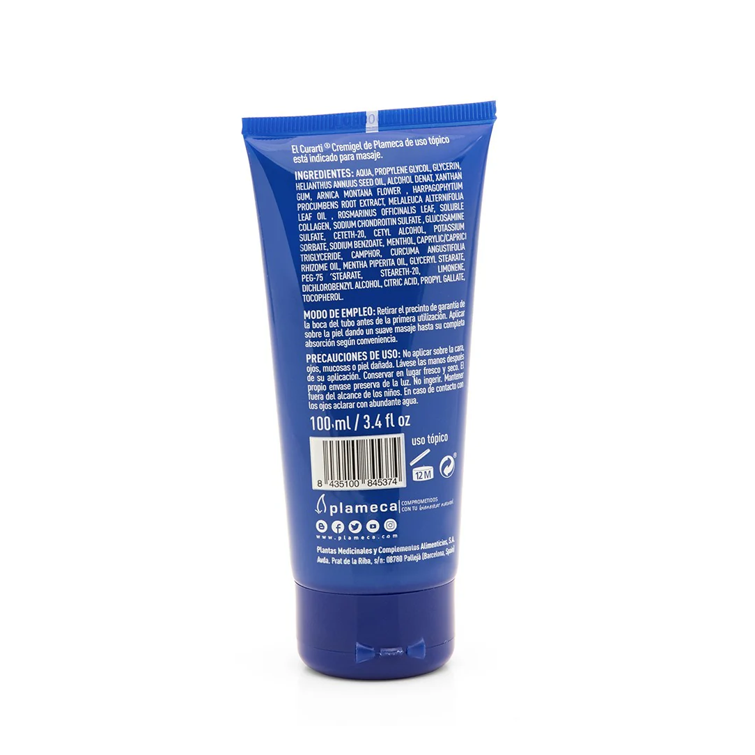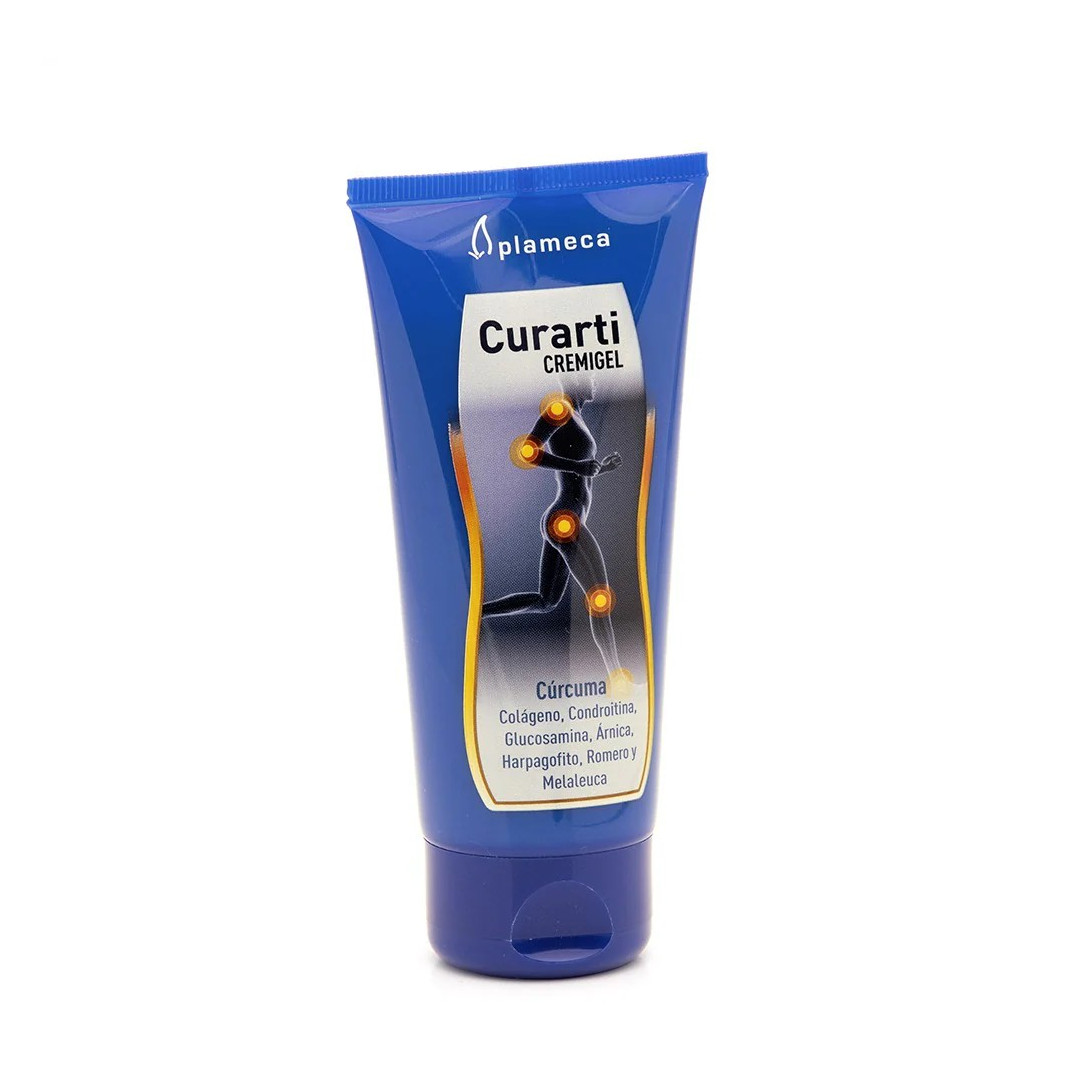 Curarti Cremigel de Plameca es un gel de masaje de uso tópico especialmente formulado para el cuidado articular. Su fórmula combina extractos vegetales como cúrcuma, árnica, harpagofito, melaleuca y romero, junto con colágeno hidrolizado, condroitina y glucosamina. Aporta una sensación de frescor inmediata gracias al mentol y al alcanfor, sin dejar película grasa y con una excelente absorción.