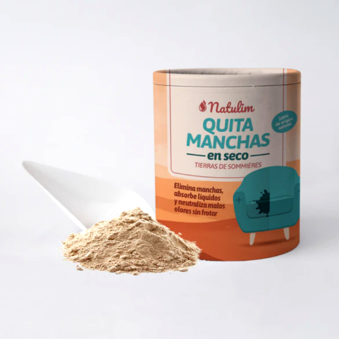 NatulimLimpiador en seco de origen mineral 100% natural que absorbe y elimina manchas de grasa y aceite en tejidos, cuero y superficies delicadas. Biodegradable y libre de químicos nocivos.