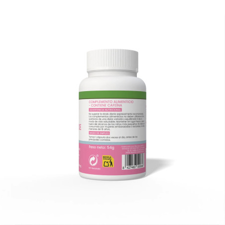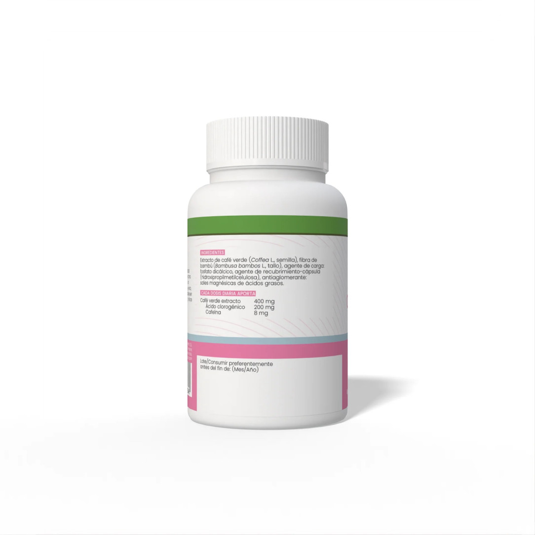 Café verde extracto, fibra de bambú, agente de carga: fosfáto cálcico, agente de recubrimiento (cápsula): celulosa y antiaglomerante: estearato de magnesio.