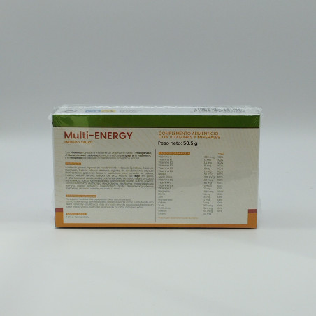 Multi-Energy de Sotya es un complemento alimenticio formulado con una completa combinación de 13 vitaminas, 9 minerales y otros nutrientes esenciales como inositol y lecitina de soja, diseñado para apoyar el metabolismo energético, fortalecer el sistema inmunológico y mejorar el bienestar general.