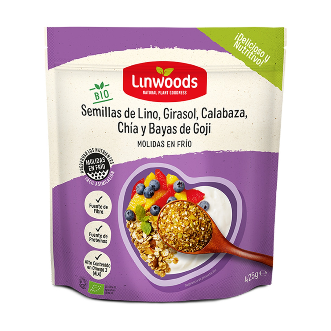 Semillas de Lino, Girasol, Calabaza, Chia y Bayas de Goji Molidas Bio 425g Linwoods