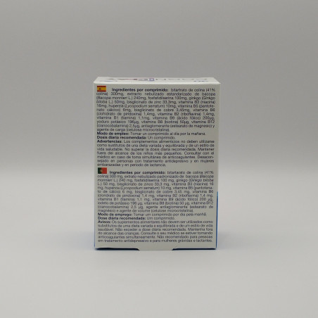 Bitartrato de colina, Bacopa Monnieri, fosfatidilserina (soja), Ginkgo Biloba, Huperzia, zinc, cobre, yodo y vitaminas del grupo B (B1, B2, B3, B5, B6, B8, B9, B12).
