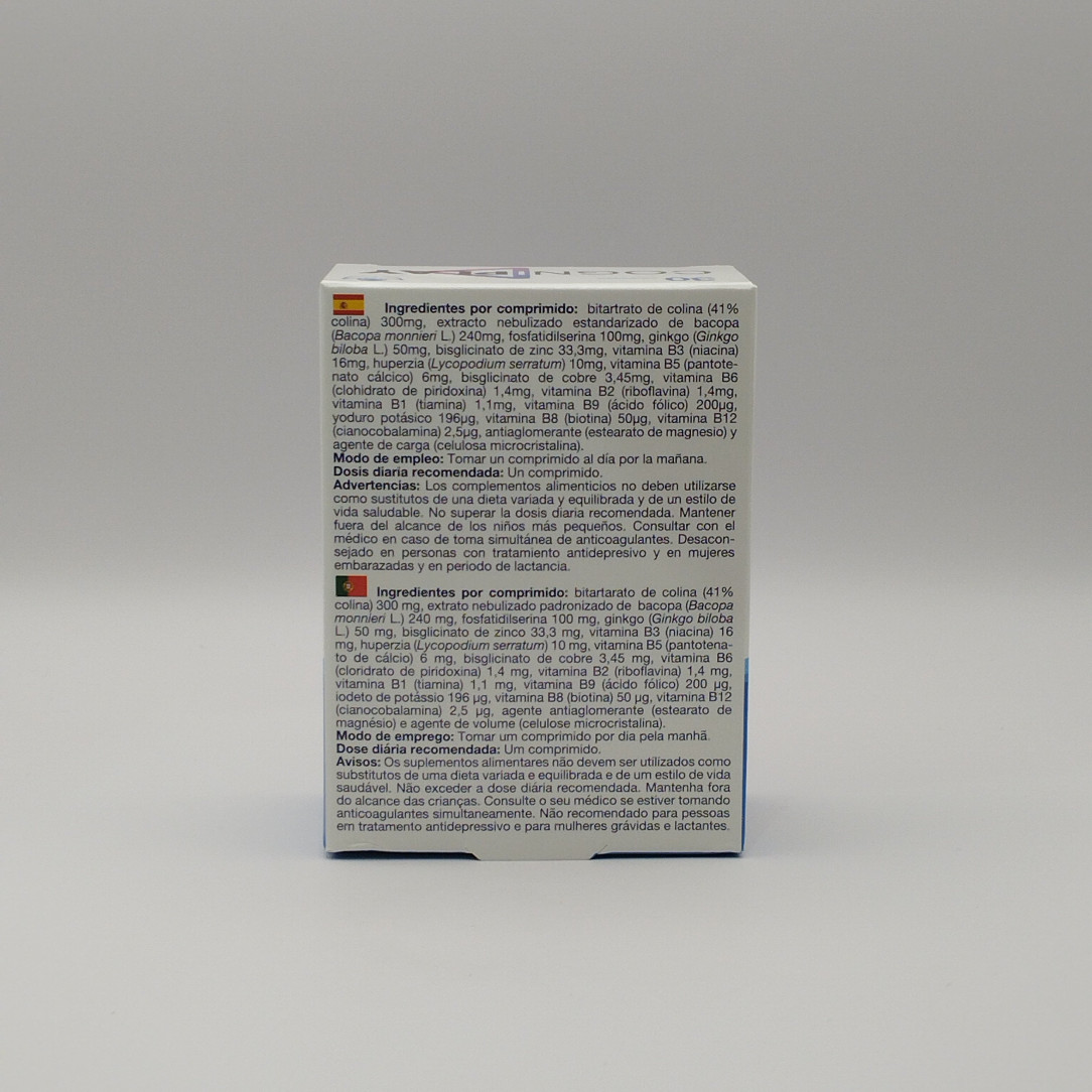 Por comprimido: Bitartrato de colina 300 mg, Bacopa Monnieri 240 mg, Fosfatidilserina (soja) 100 mg, Ginkgo Biloba 50 mg, Huperzia 10 mg, Zinc 10 mg (100% VRN), Vitamina B3 16 mg (100% VRN), Vitamina B5 6 mg (100% VRN), Cobre 1 mg (100% VRN), Vitamina B6 1,4 mg (100% VRN), Vitamina B2 1,4 mg (100% VRN), Vitamina B1 1,1 mg (100% VRN), Vitamina B9 200 μg (100% VRN), Yodo 150 μg (100% VRN), Vitamina B8 50 μg (100% VRN), Vitamina B12 2,5 μg (100% VRN).