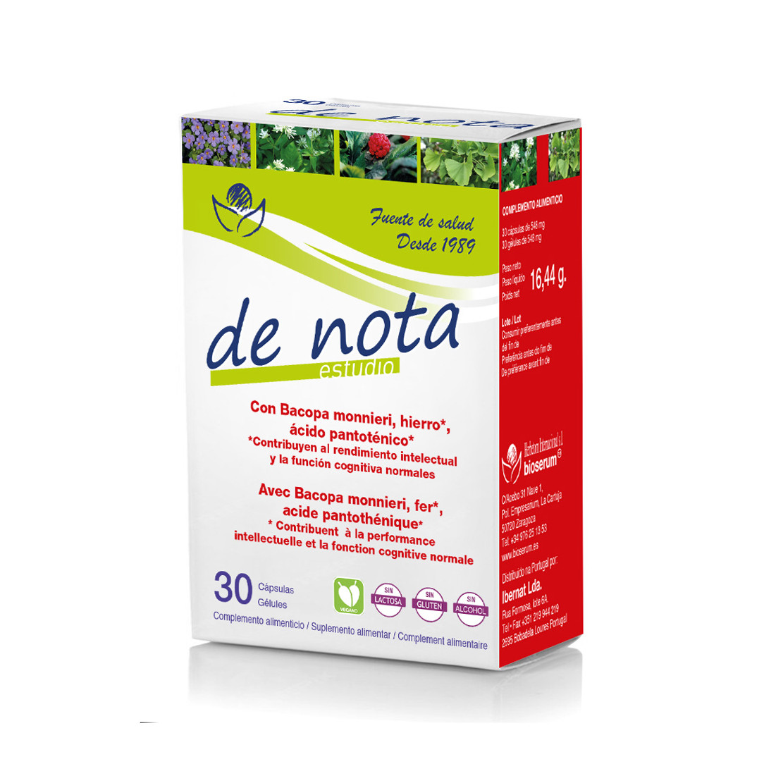 De Nota Estudios de Bioserum es un complemento alimenticio diseñado para apoyar la concentración, la memoria y el rendimiento mental. Su fórmula combina extractos vegetales, aminoácidos, vitaminas y minerales esenciales para épocas de alta exigencia cognitiva.