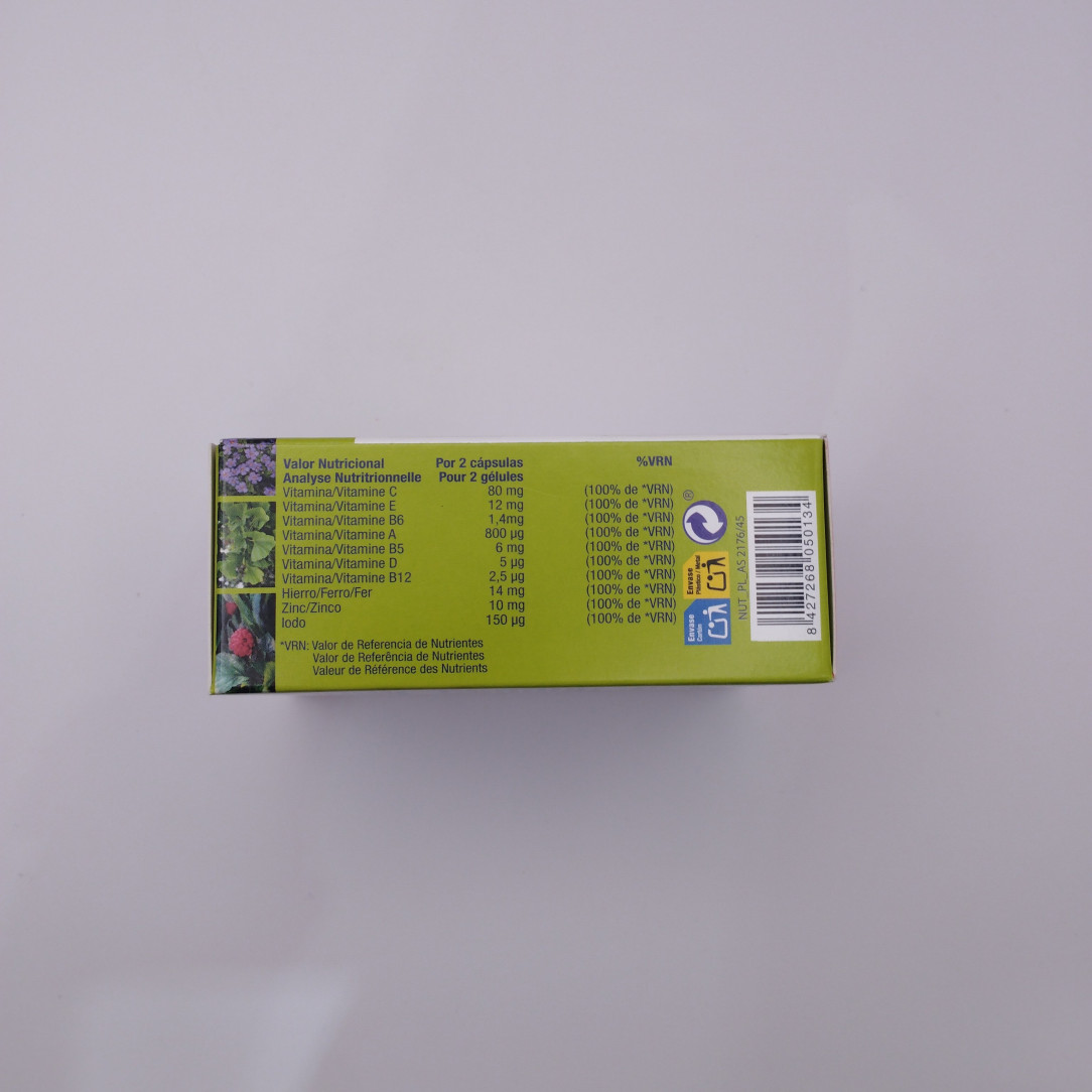 Envase con 30 cápsulas vegetales. Peso neto: 16,44 g.