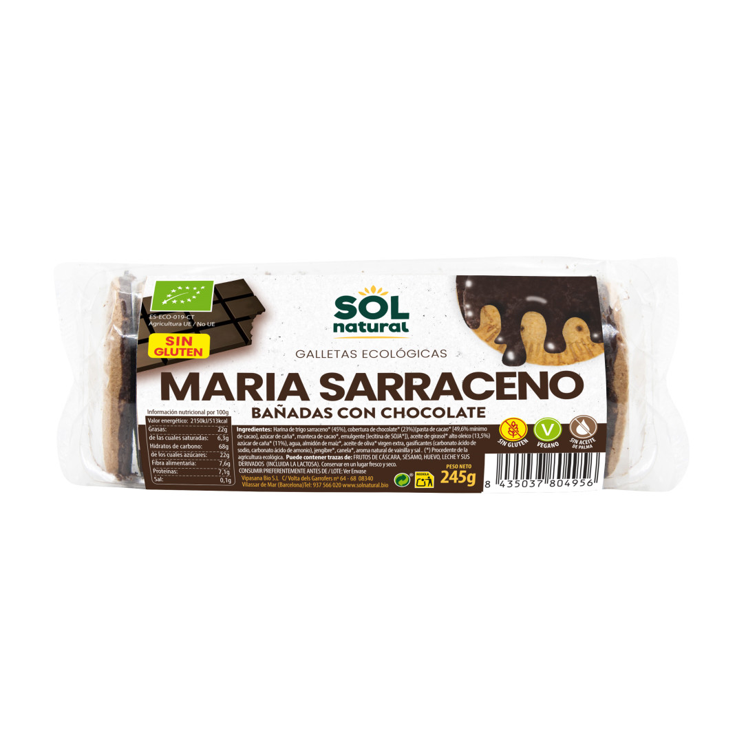 Sol NaturalGalletas Marias Trigo Sarraceno bañadas de chocolate bio 245g Sol Natural