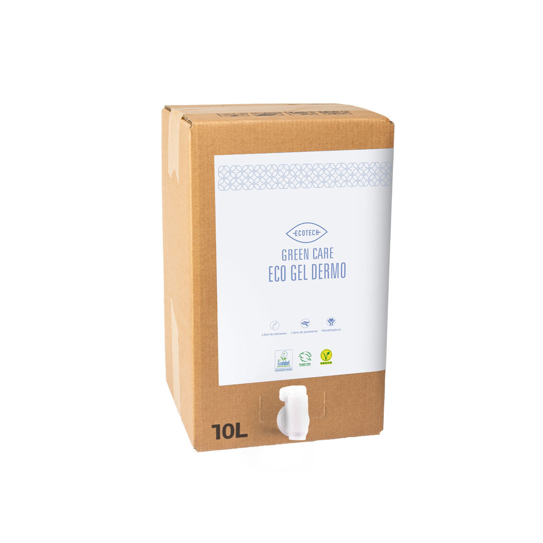 EcotechGel corporal ecológico de pH neutro con tensioactivos vegetales para higiene diaria suave. Formato a granel de 10L ideal para economía circular y uso continuado.