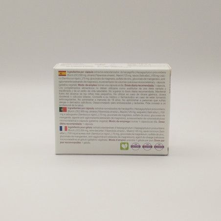 - Harpagofito: 300 mg (titulado al 2% en harpagósidos)