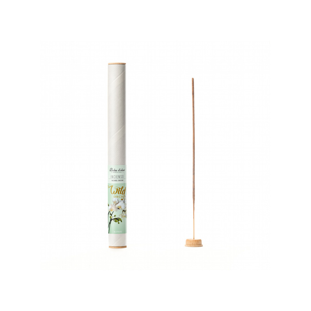 Boles dolor16 varillas de incienso con fragancia de orquídea silvestre. Aroma floral dulce y exótico que aromatiza espacios y favorece la relajación. De Boles d'olor, especialista en ambientación natural.