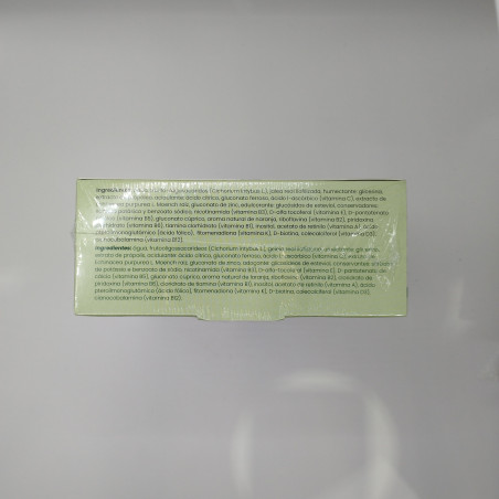 Agua, fructosa, extracto de própolis (agua y humectante: glicerina), jalea real, extracto de equinácea (Echinacea purpurea L., Moench, raíz; agua y humectante: glicerina), acidulante: ácido cítrico (E 330), gluconato de hierro, ácido L-ascórbico (vitamina C), ascorbato sódico, gluconato de zinc, edulcorante: sucralosa (E 955; maltodextrina), acetato de D-alfa tocoferilo (vitamina E), niacina (vitamina B3), conservadores: sorbato potásico (E 202) y benzoato sódico (E 211), D-pantotenato cálcico (vitamina B5), acetato de retinilo, aroma de naranja, gluconato cúprico, clorhidrato de piridoxina (vitamina B6), riboflavina (vitamina B2), clorhidrato de tiamina (vitamina B1), inositol, colecalciferol (vitamina D; maltodextrina), filoquinona (vitamina K), ácido pteroilmonoglutámico (ácido fólico), D-biotina.