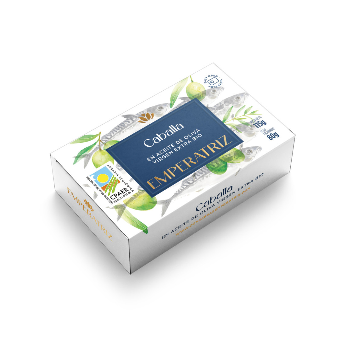 La Caballa en Aceite de Oliva Virgen Extra Ecológico de Conservas Emperatriz está elaborada con pescado fresco de alta calidad y aceite de oliva virgen extra procedente de agricultura ecológica. Una conserva nutritiva, responsable y con un sabor auténtico, ideal para quienes buscan un alimento saludable y sostenible.