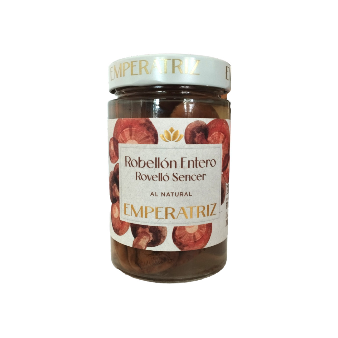 El Rovellón Entero al Natural Bio de Emperatriz es un producto de calidad primera, elaborado con setas silvestres Lactarius deliciosus procedentes de agricultura ecológica. Listo para usar, conserva todo el sabor y la textura natural de los rovellones frescos, siendo perfecto para añadir a guisos, arroces, revueltos o como guarnición. Un producto auténtico y saludable, sin conservantes artificiales, que mantiene intactas sus propiedades y aroma.