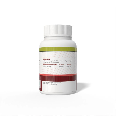 Presentación y composiciónPerlas 720mg: envases de 110 perlas de 720mg con 500mg de aceite de lecitina de soja no GMO, en una cápsula de gelatina y glicerina. Propiedades:La lecitina es una mezcla compleja de fosfolípidos y triglicéridos obtenida mediante el lavado de aceites vegetales con agua. Los fosfolípidos más comunes en esta mezcla son la fosfatidilcolina y fosfatidiletanolamina, aunque los fosfolípidos de inositol, serina y ácido fosfatídico también son importantes. Los fosfolípidos son el bloque celular básico, ya que de ella están compuestas las membranas celulares. La lecitina es más conocida por su capacidad de formar lipoproteínas de transporte, lo que la capacita para reducir los niveles de colesterol en sangre, protegiendo el organismo de la aterosclerosis. Por contenido en colina, compuesto esencial para el correcto funcionamiento del sistema nervioso, ya que es precursor de las acetilcolinas. La colina también ha demostrado ser un eficiente hipoténsico.