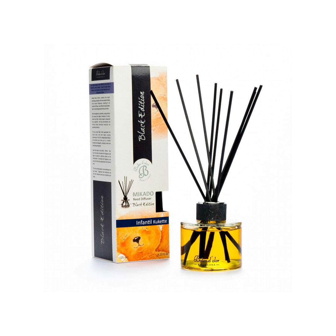 Línea Mikado Black Edition, con maravillosas fragancias naturales de perfumes adaptados, sin alcohol u otros compuestos orgánicos volátiles. Respetuoso con el medio ambiente y sin el uso de materiales derivados de animales o probados previamente en animales. Las nuevas varillas de fibra de algodón, con una alta capacidad de absorción capilar, extienden poco a poco el aroma que te rodeará y completará tu hogar.