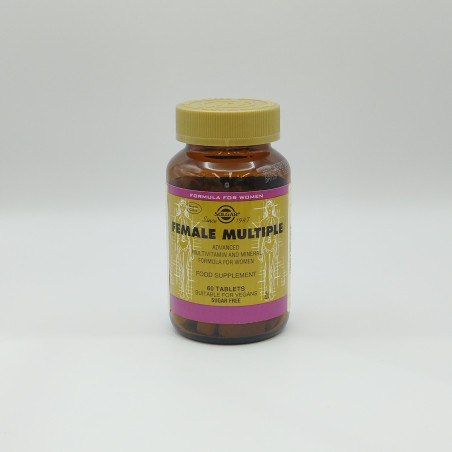 Female Multiple es un complemento alimenticio específicamente formulado para mujeres que combina 27 nutrientes esenciales, incluyendo vitaminas y minerales necesarios en etapas importantes de fertilidad y reproducción. Su fórmula exclusiva está diseñada para aportar un balance adecuado de nutrientes que contribuyen al bienestar femenino.