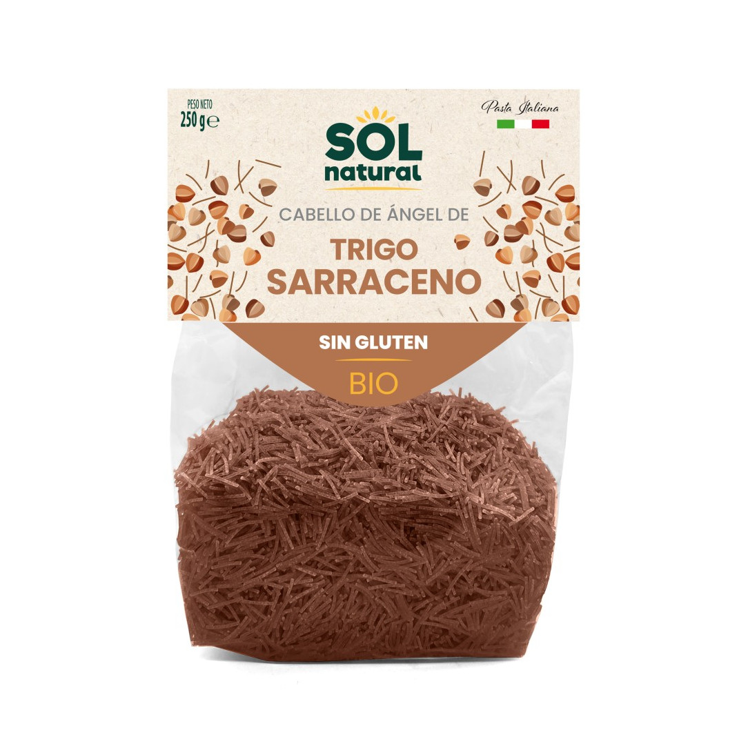 Sol NaturalPasta ecológica elaborada con harina de trigo sarraceno y agua, una alternativa sin gluten a la pasta tradicional. Su formato fino permite prepararla rápidamente con una cocción de 2 a 4 minutos.