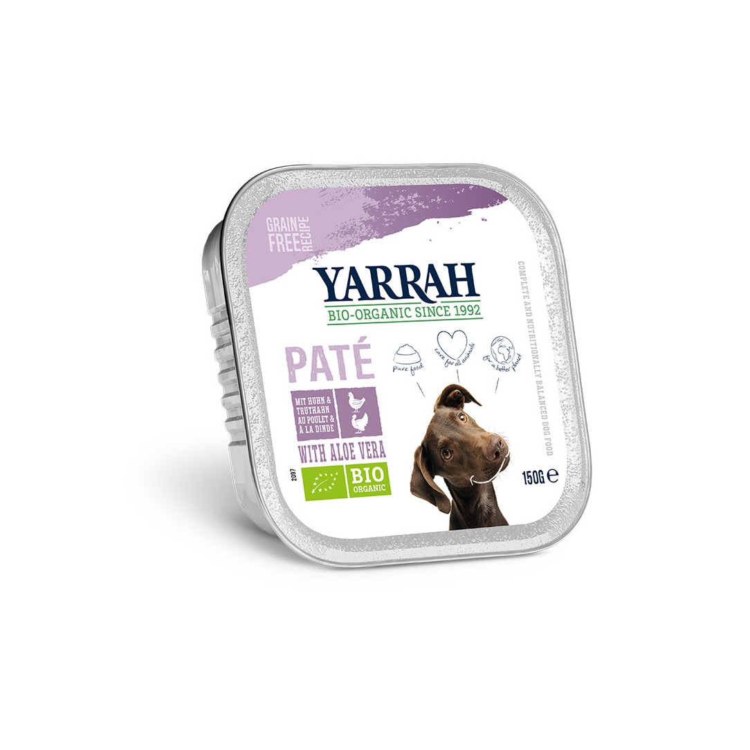 Pate para perros con pollo y pavo tarrina bio 150g Yarrah