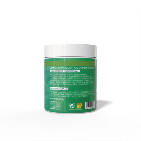 Como complemento alimenticio tomar 5 gramos (una cucharadita de cafe) dos horas antes del entrenamiento. Beber mucha agua durante el dia. Mantener en lugar fresco y seco, fuera del alcance de los niños.Dosis máxima recomendada: 12 g