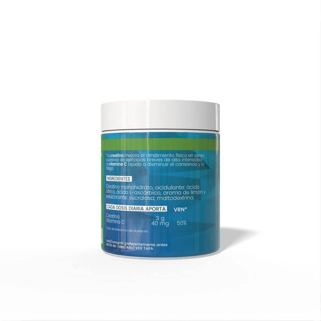 Creatina monohidrato, ácido ascórbico (vitamina C), edulcorante: sucralosa (E955), acidulante: ácido cítrico (E330).
