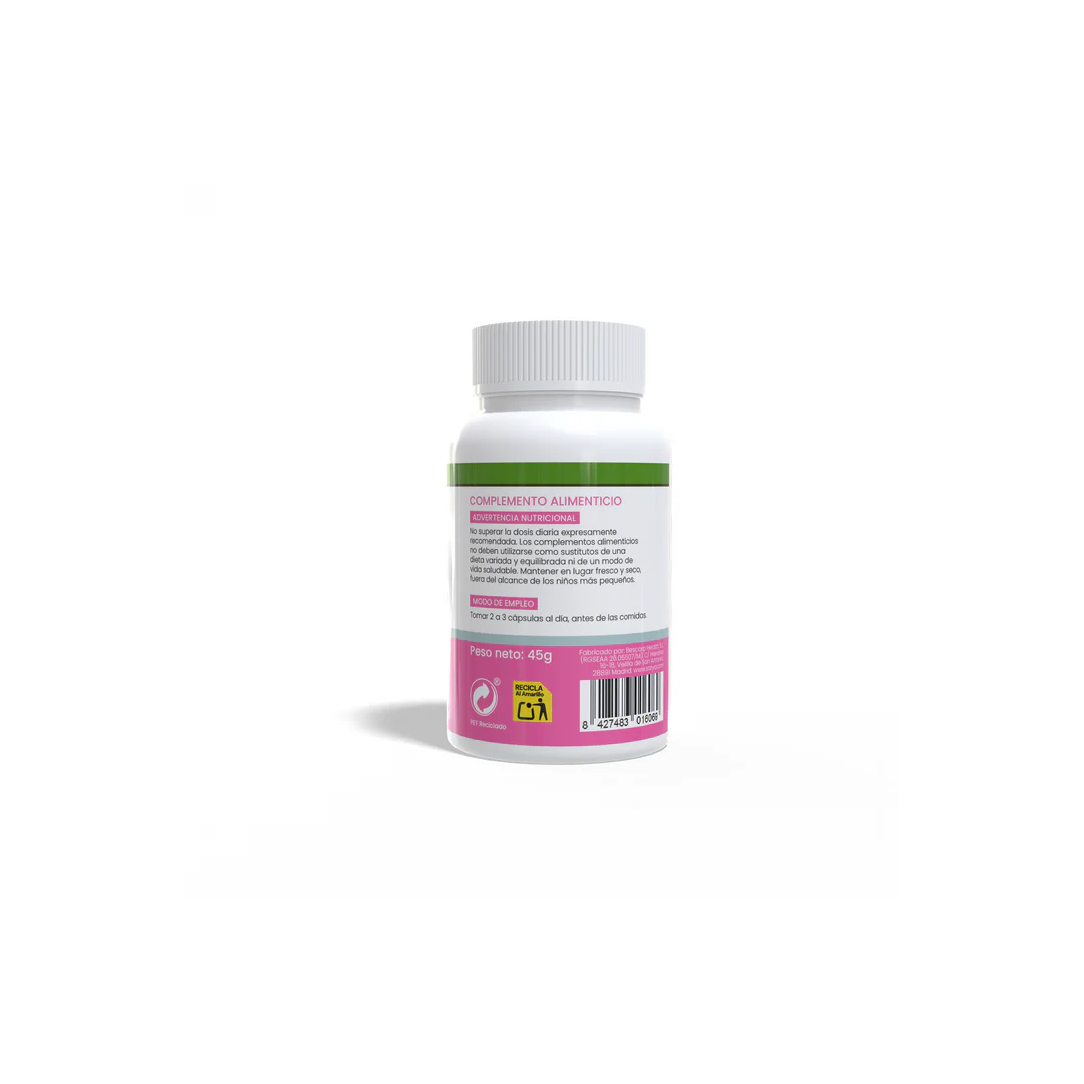 90 cápsulas vegetales de 500 mg. Peso neto: 45 g. Dosis para 30 días.