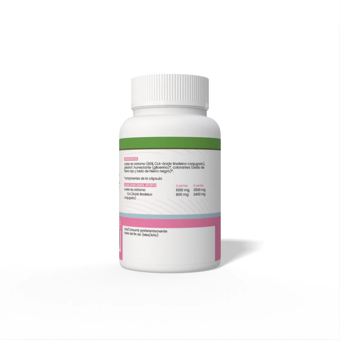 en envases de 90 perlas de 710mg. Cada cápsula contiene 500mg de ácido linoleico conjugado al 80%. Perla de gelatina y glicerina.Propiedades: