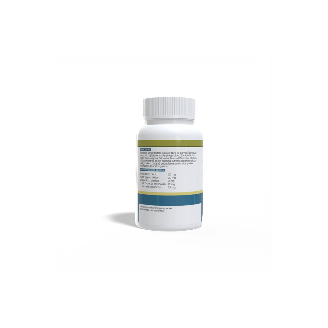 Agente de carga: fosfato cálcico (E 341), fibra de bambú (Bambusa bambos L., tallo), planta de ginkgo biloba (Ginkgo biloba L., hojas), fructooligosacáridos (Achicoria (Cichorium intybus L., raíz), estabilizante: goma arábiga (E 414), extracto de ginkgo biloba (Ginkgo biloba L., hojas), antiaglomerantes: sílice (E 551) y estearato de magnesio (E 470b).