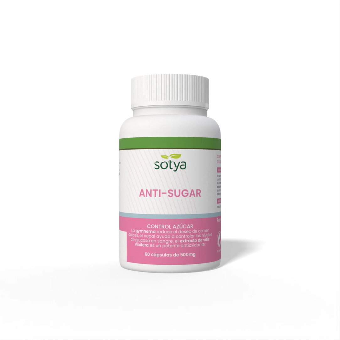 El Antisugar de Sotya es un complemento alimenticio formulado para controlar los niveles de azúcar en sangre y reducir el antojo de dulces. Su combinación de extracto de gymnema, nopal y vid roja (Vitis vinifera) ofrece un apoyo natural para regular la glucosa, disminuir el apetito por los azúcares y aportar una potente acción antioxidante.