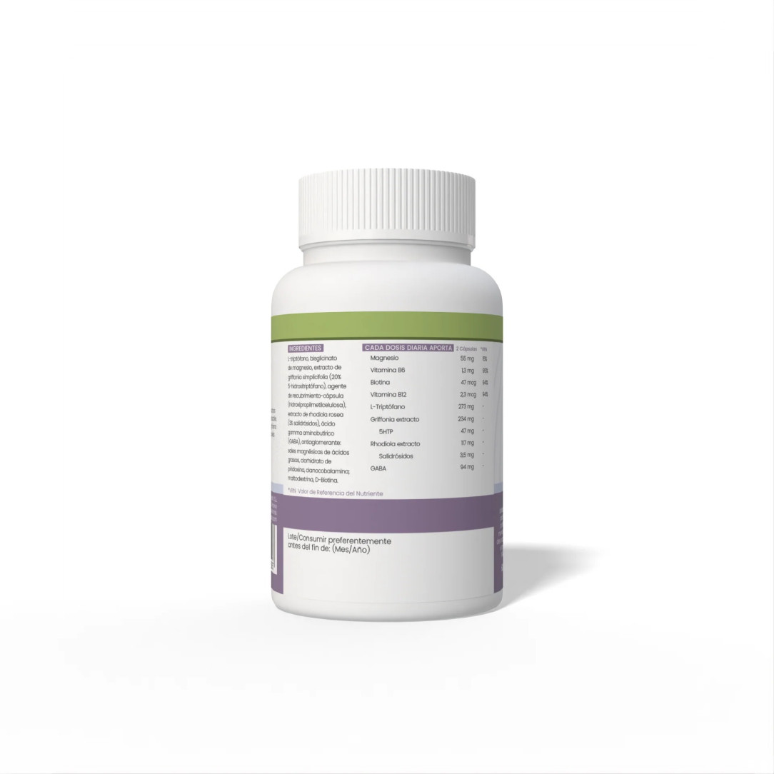 Complemento alimentario para regular la serotonina del cuerpo, ayudando al sueño a saciar el hambre y a tratar problemas de estrés.