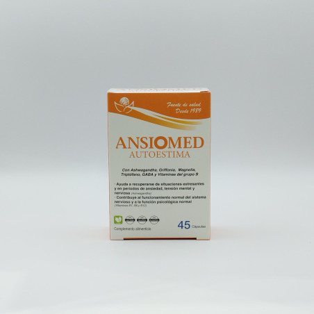 Ansiomed Autoestima es un complemento alimenticio formulado con ashwagandha, magnolia, GABA, grifonia, triptófano y vitaminas del grupo B. Esta combinación de ingredientes naturales está diseñada para contribuir al bienestar mental y emocional en situaciones de estrés y tensión.