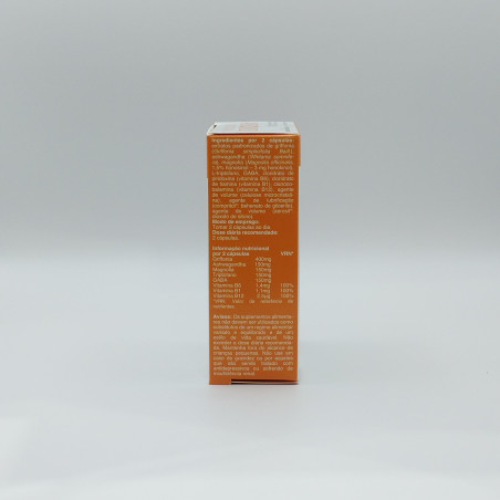Griffonia (Griffonia simplicifolia Baill.) (20% HTP), Ashwagandha (Whitania somnifera) (5% withanolidos), Magnolia (Magnolia officinalis) (1,5% honokinol), Triptófano, GABA, Vitamina B6, Vitamina B1, Vitamina B12.